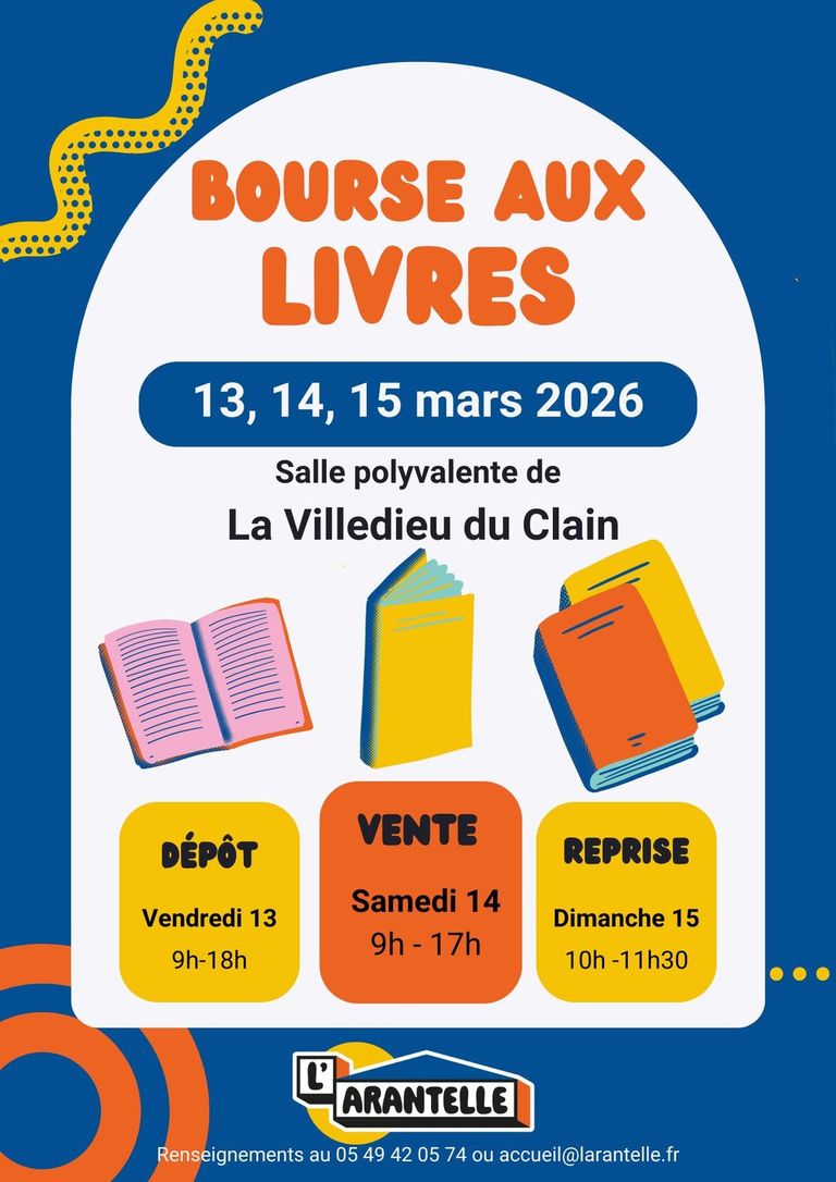 DU VENDREDI 13 AU DIMANCHE 15 : BOURSE AUX LIVRES – AVENUE DES BOSQUETS – LA VILLEDIEU DU CLAIN
